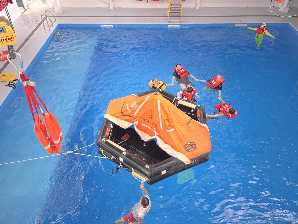 PST was also excellent. We were shown how to don a life jacket correctly —and had a challenge in which we had to put them on in under a minute (this is the standard time expectancy for donning a life jacket). We then tried donning the immersion suits, for which I now hold the record for the fastest time to put one on, at 1 minute and 5 seconds.